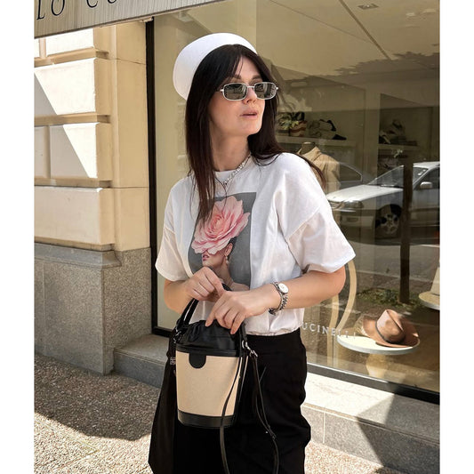 Canvas & Leather Party Bag Contrast Color Handbags for Woman