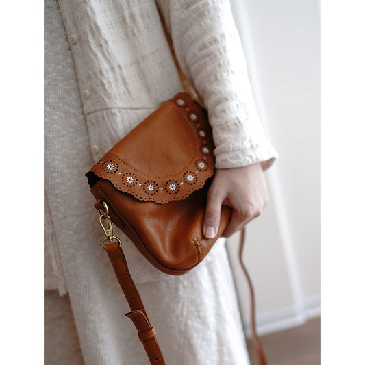 Vegetable Tanned Leather French Flower Crossbody Bag